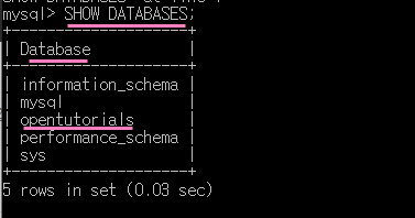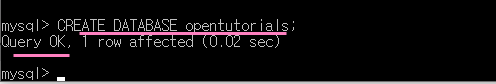이제 명령을 내리면 opentutorials의 표를 대상으로 명령을 실행하게 된다.