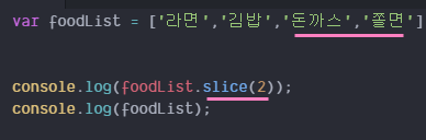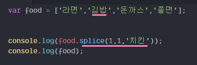 일단 인수가 1개일 경우는 인수가 가리키는 인덱스의 요소부터 배열의 끝 요소까지 삭제한다.