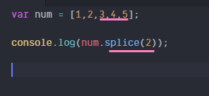 인수가 2개일 경우는 num.splice(2, 1)을 실행하면 인덱스 값이 2인요소부터 1개의 요소를 삭제한다.