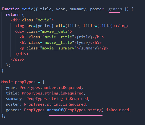 genres props가 배열이므로 map() 함수를 사용할거다.