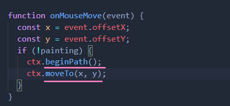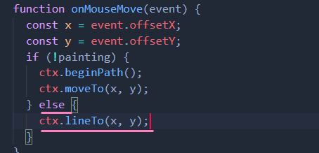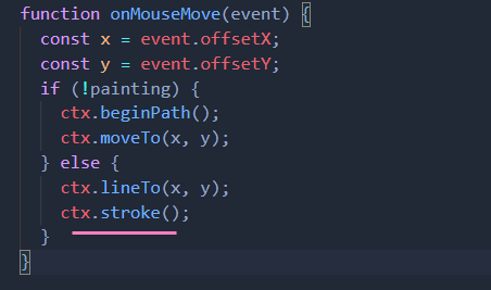 ※ lineTo와 stroke는 내가 마우스를 움직이는 내내 발생하는거다.