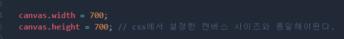 canvas.height = 700; // css에서 설정한 캔버스 사이즈와 동일해야된다.