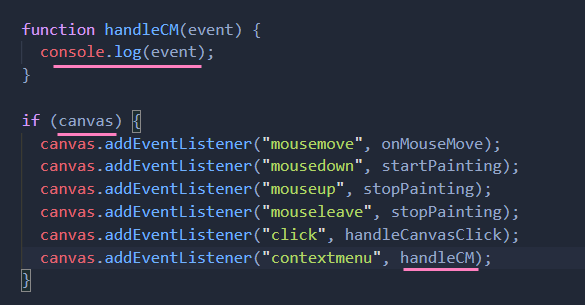 이러한 context menu를 원하지 않으면 addEventListener로 할 수 있다.