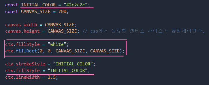 canvas.height = CANVAS_SIZE; // css에서 설정한 캔버스 사이즈와 동일해야된다.